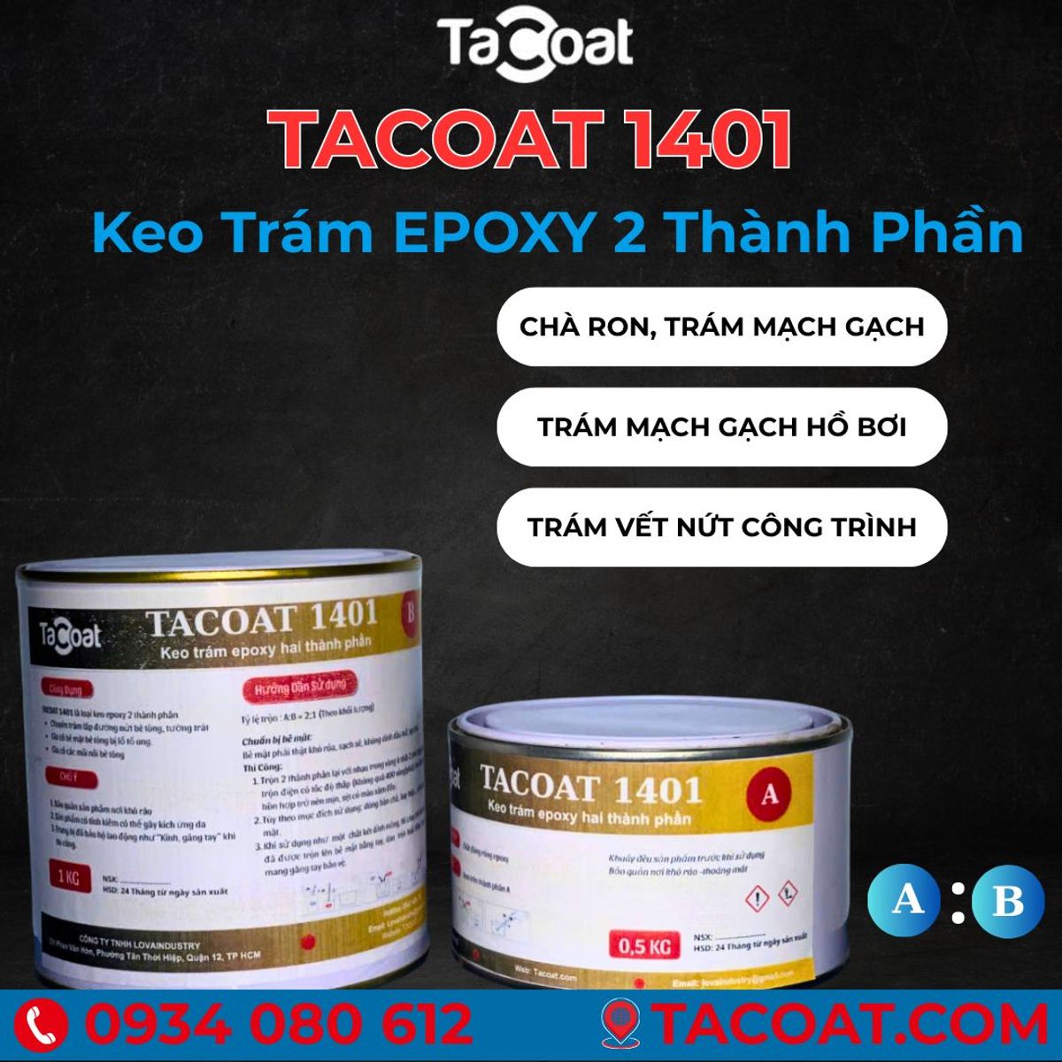TACOAT 1401 là một loại keo trám vá, sửa chữa chuyên dụng, gốc nhựa Epoxy biến tính hai thành phần. Sản phẩm được thiết kế để xử lý và trám kín các vết nứt, khe hở trên bề mặt tường, sàn và cấu kiện bê tông.