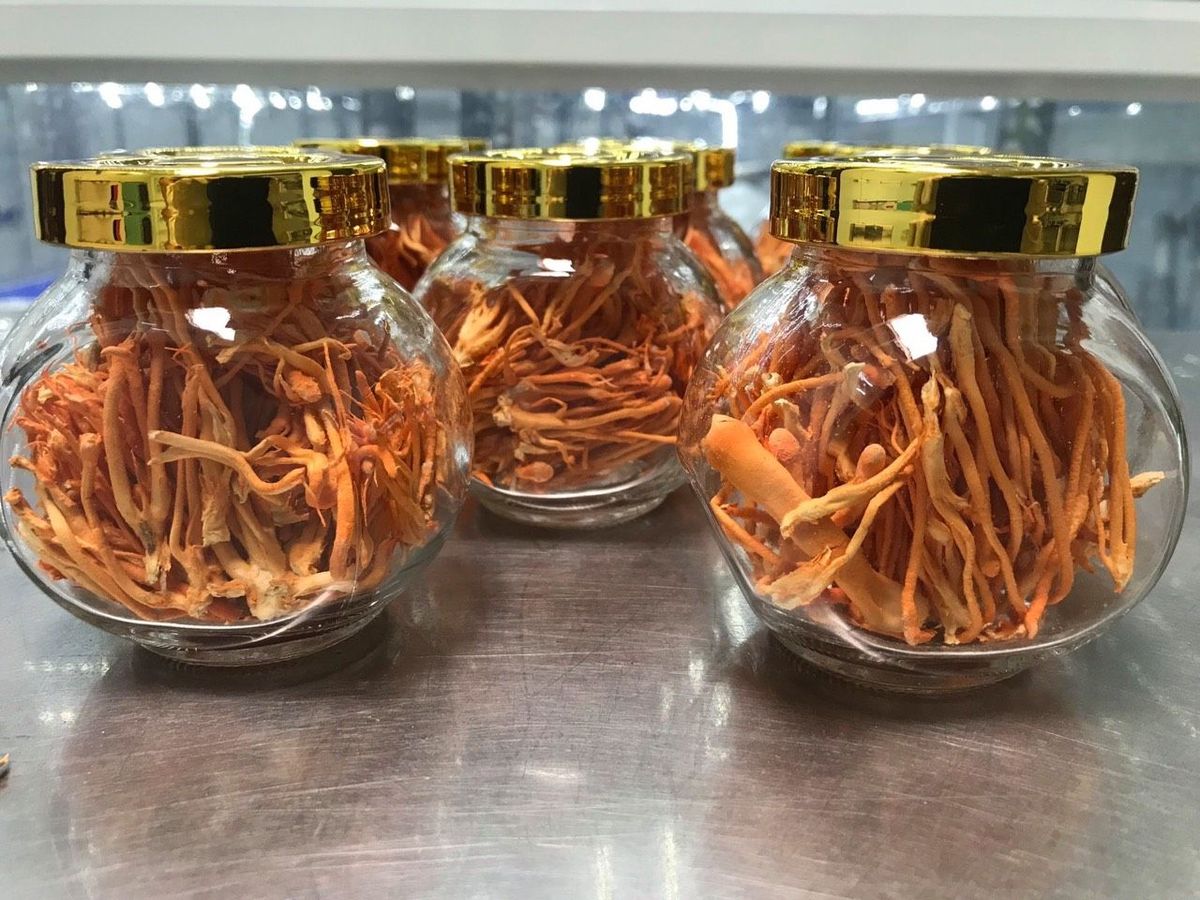 100% Đông trùng hạ thảo sấy thăng hoa. Sấy thăng hoa là phương pháp bảo quản tân tiến, có ưu điểm vượt trội giúp nguyên liệu được bảo quản trong trạng thái khô hoàn toàn, tránh bị ẩm mốc trong thời gian dài, khi sử dụng được phục hồi nguyên vẹn như trạng thái tươi mới, giữ nguyên hàm lượng dược chất và dinh dưỡng ban đầu.