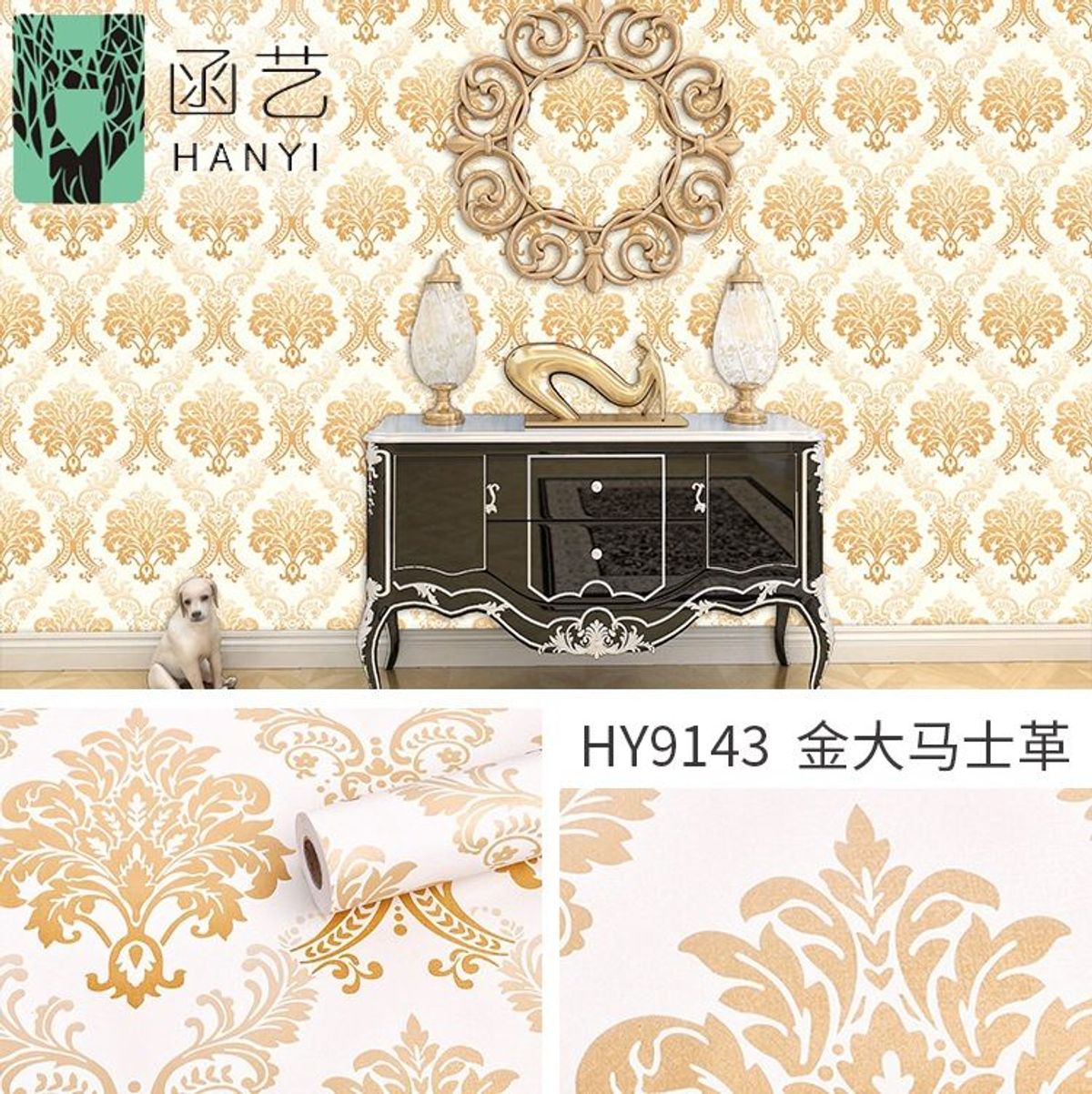 10m Giấy dán tường hoa văn vàng bóc và dán trang trí tường