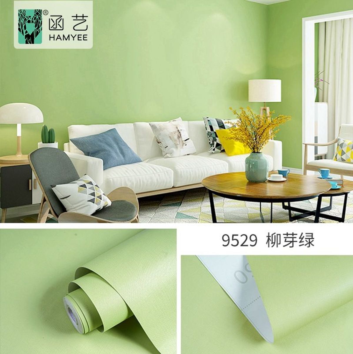 10m Giấy dán tường xanh lá mạ pastel bóc và dán trang trí tường