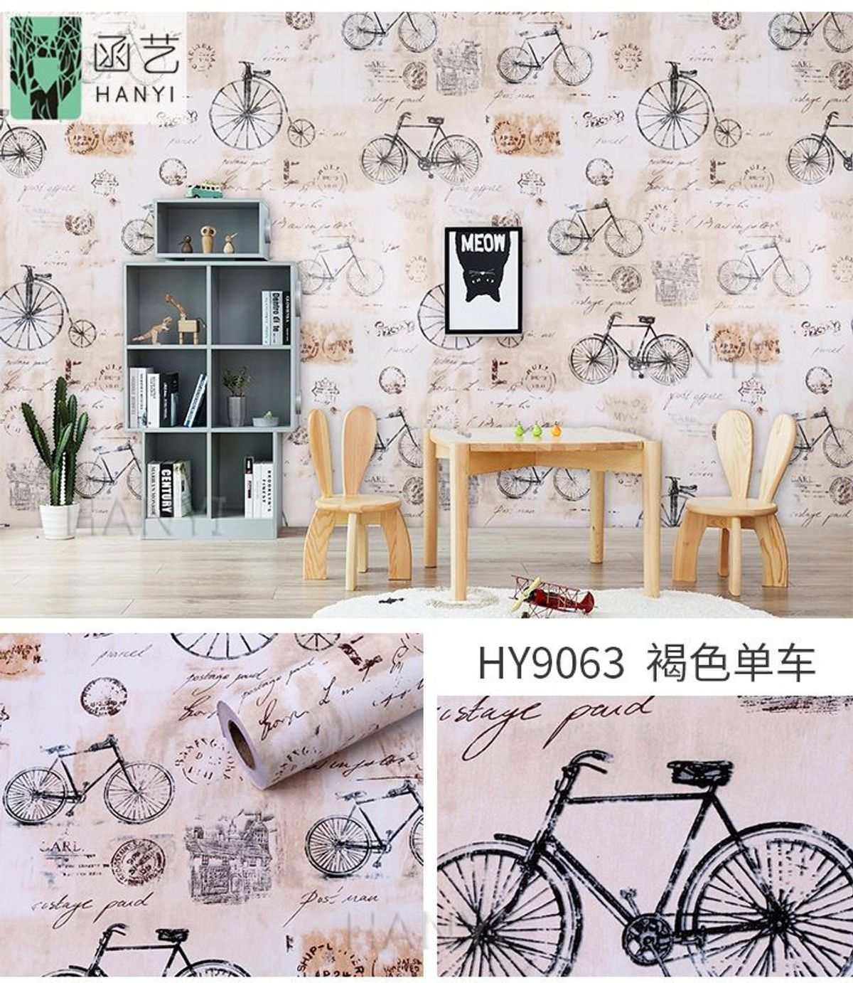 10m Giấy dán tường xe đạp vintage bóc và dán trang trí tường