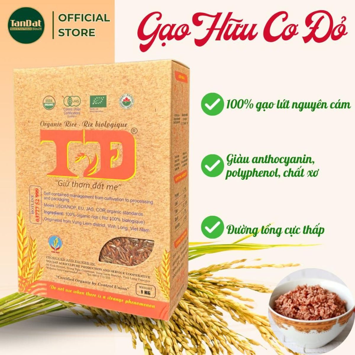 Gạo Hữu Cơ Đỏ Hồng Ngọc là giống gạo lứt nguyên cám cao cấp được trồng tại vùng nguyên liệu hữu cơ chuẩn quốc tế của HTX Tấn Đạt – Vĩnh Long.