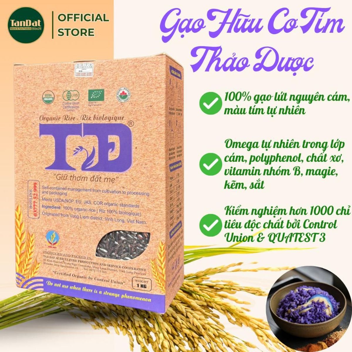 Gạo Hữu Cơ Tím Thảo Dược là dòng gạo cao cấp quý hiếm, được canh tác tại vùng trồng hữu cơ chuẩn quốc tế của HTX Tấn Đạt – Vĩnh Long.