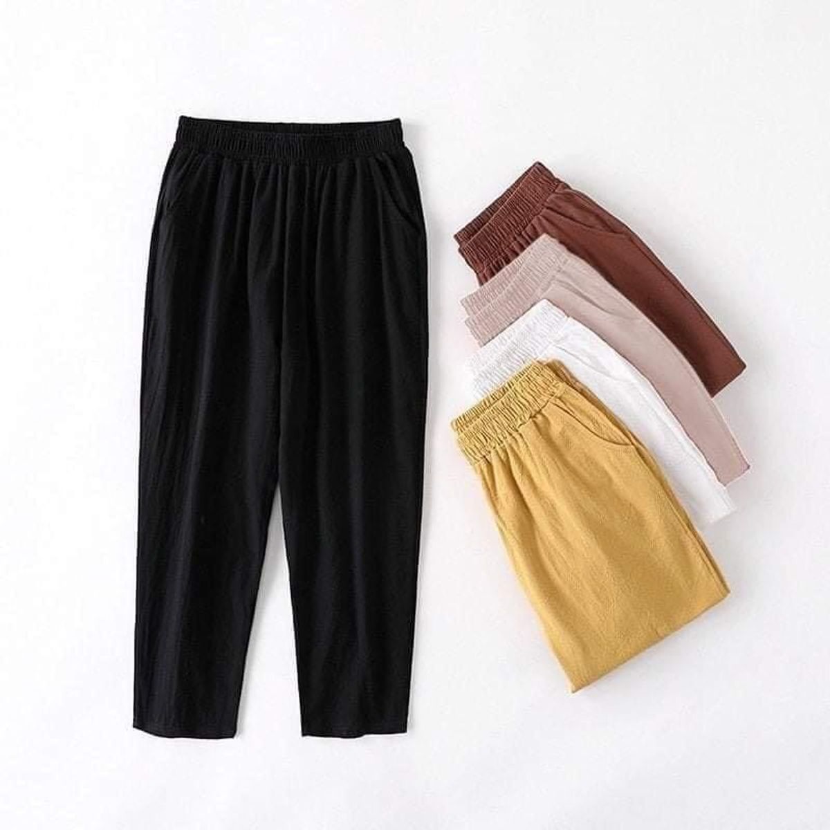 Quần baggy đũi xước Hàn Quốc lưng thun màu: đen, vàng, xanh đen, nâu, xám, be