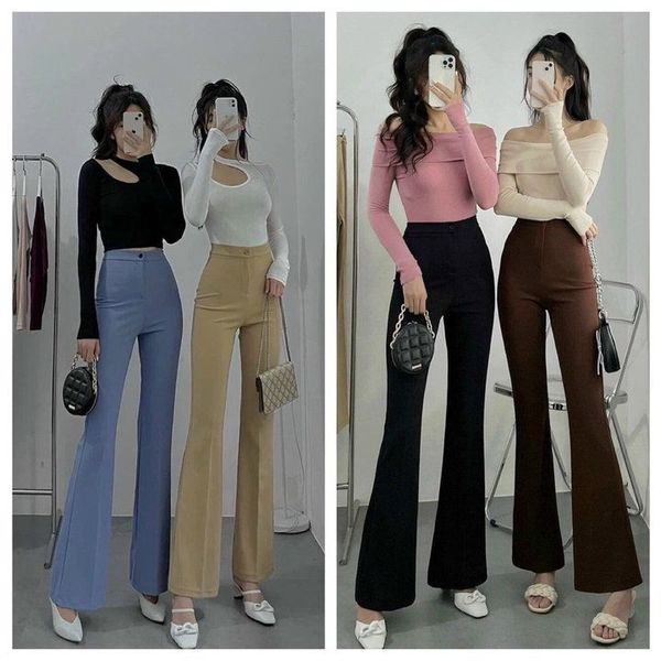 - Quần ống loe cạp cao giúp che bớt đi khuyết điểm của cơ thể, sản phẩm được may theo form chuẩn giúp tôn lên vóc dáng và chiều cao