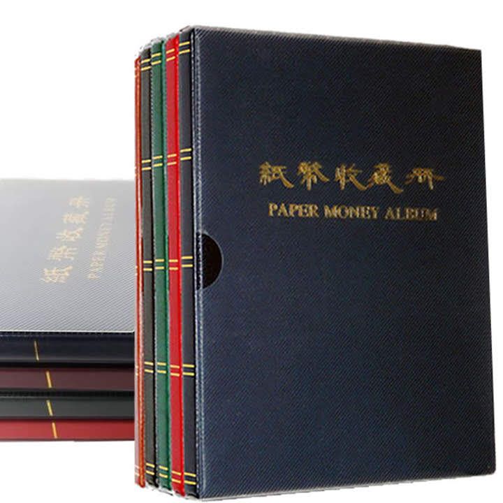Kích thước của album đựng tiền được sản xuất theo quy cách chuẩn là 29.3cm x 23cm. Bên ngoài album là lớp da được gia công nhiều màu sắc đẹp mắt như đen, đỏ và xanh đen.