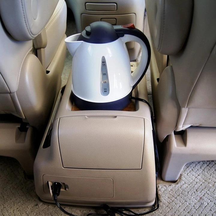 * Rắc cắm qua tẩu sạc đơn giản tiện dụng ngay trong cabin, nắp ấm có thể bật lên với một nút ấn tiện dụng cho việc lấy nước, ấm nhảy công tắc khi nước sôi.