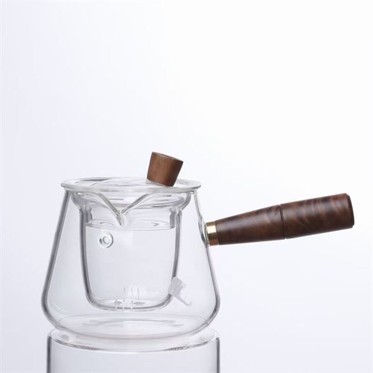 + Bình pha trà thủy tinh có kèm lọc có quai gỗ cầm tay.