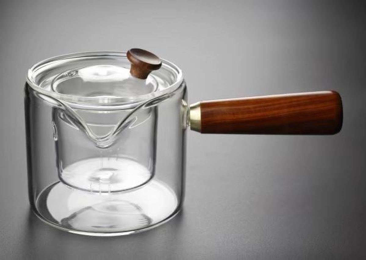 + Bình pha trà thủy tinh có kèm lọc có quai cầm gỗ