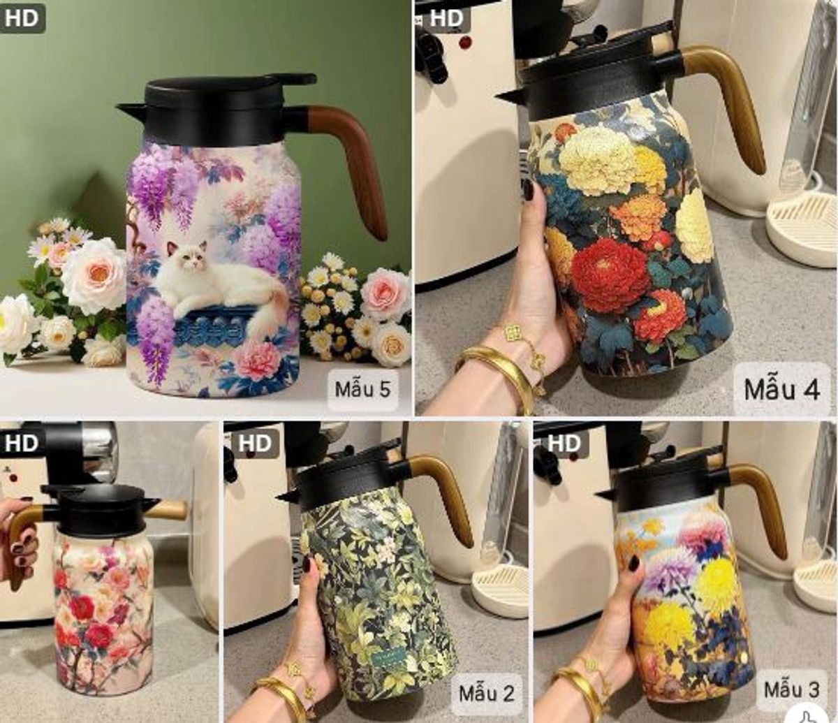 Năm nay hoa lá cành siêu hót hít, từ cặp tóc hoa, vòng tay hoa, áo quần, ... Khách yêu của em thì đặc biệt hơn, sắm ngay em ấm giữ nhiệt hoa nghệ thuật này Đúng là sở hữu chiếc ấm này k khác gì vườn hoa thơm ngát trong nhà