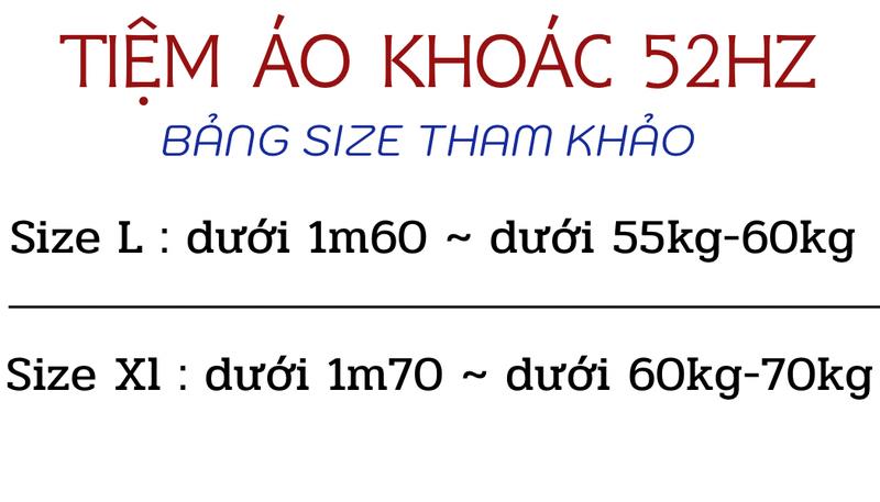 • Xl: Dưới M7 ~ Dưới 60-70kg