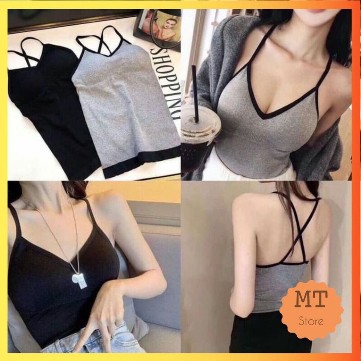 Bra dáng dài dây chéo V89 Mút ngực đệm bàn tay thay thế luôn áo lót Chất siêu co giãn, freesize từ 45-60kg Màu: ghi viền đen, đen trơn như ảnh