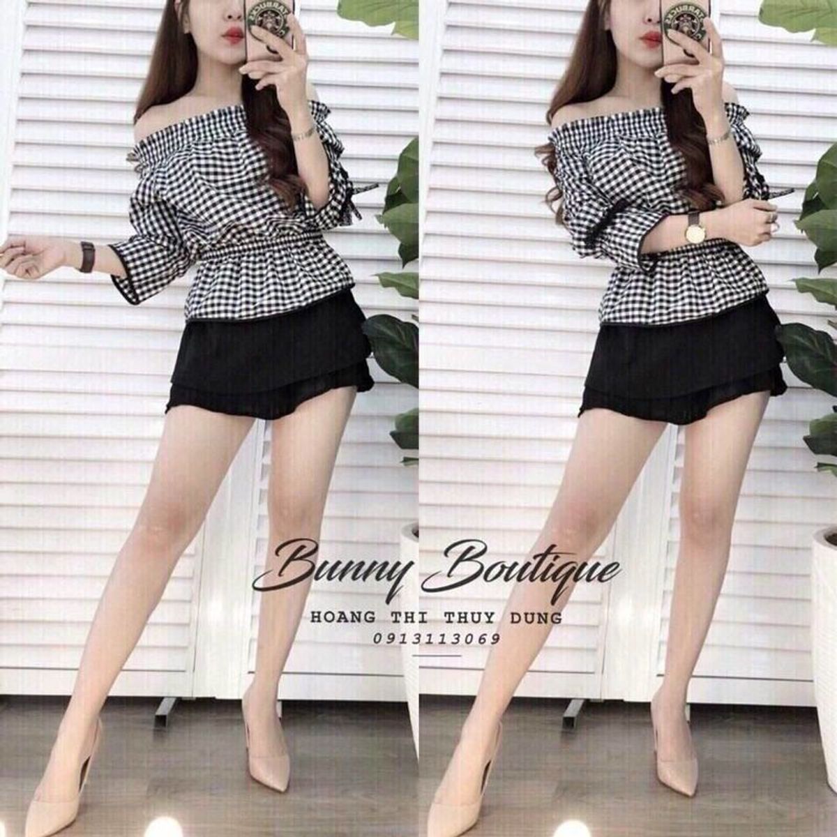 áo bẹt vai sọc caro tay loe giá sỉ - giá bán buôn