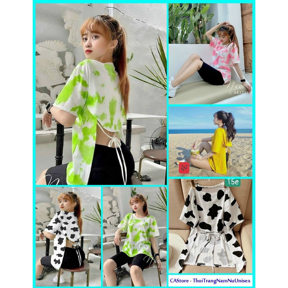 Áo thun họa tiết bò sữa hở lưng buộc dây năm nay lên ngôi nha quí zị...
