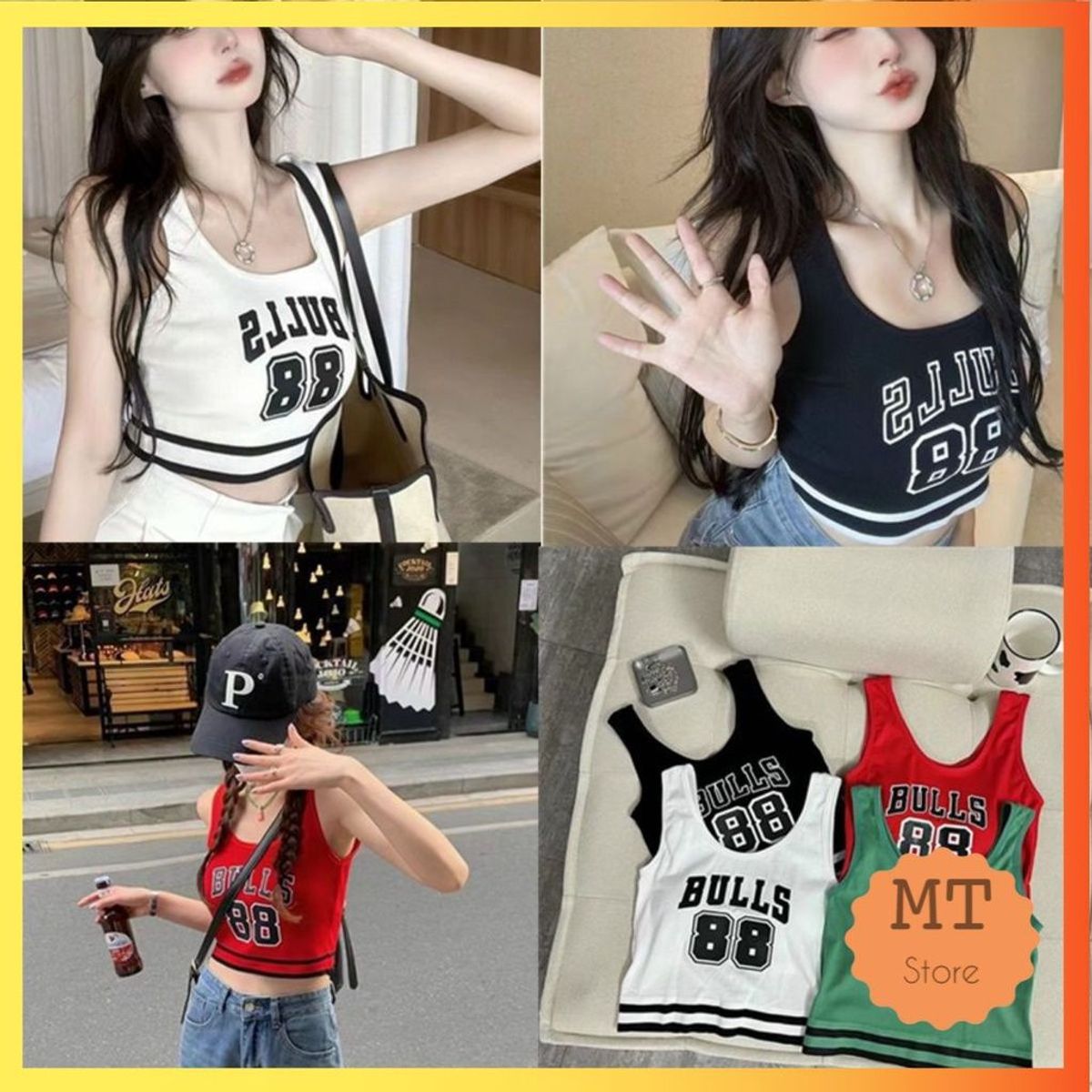 Bra thể thao bulls 88 ms 6621 đã về Đủ màu: đen- trắng- xanh- đỏ Áo chất cotton, dáng lửng như ảnh, -freesize 40-60kg Áo may kèm mút ngực thay thế áo lót Dáng lửng phối viền kẻ khoẻ khoắn, năng động. Đơn giản mà mặc lên xinh không kén dáng ạ #aobra #bramaumoi #branu #aolot