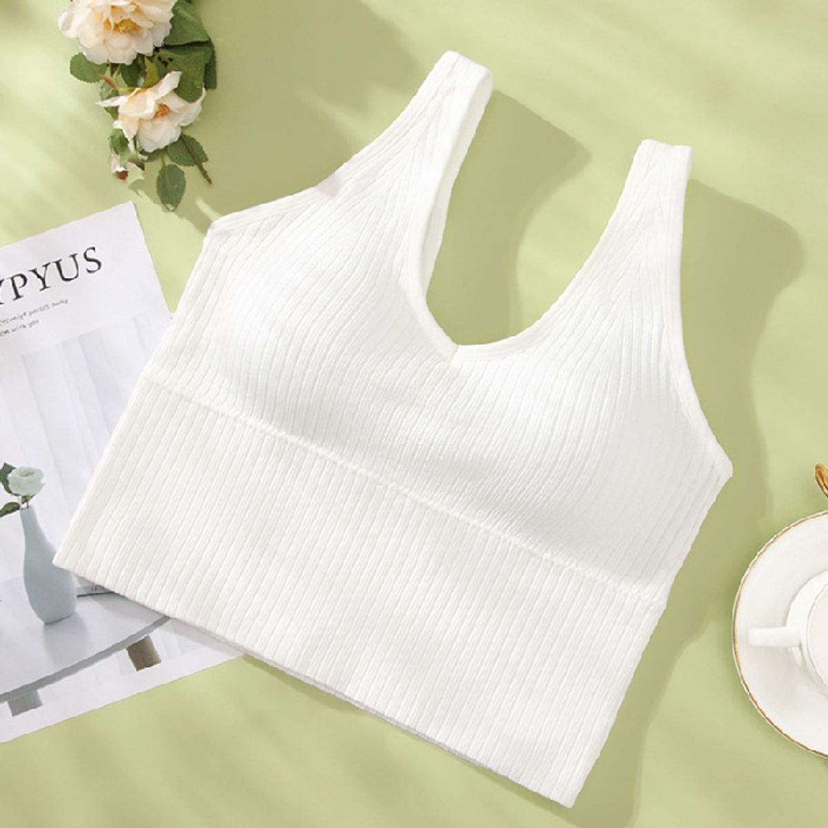 Áo Bra Tập Gym, Yoga Cổ Tim, Thân Dài, Thun Tăm Chất Đẹp, Có Mút Ngực, Phong Cách Hàn Quốc