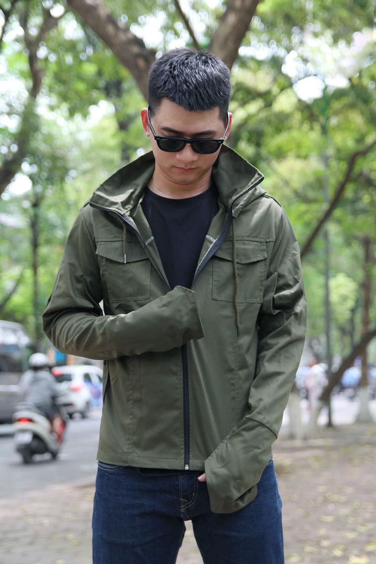 Tay áo vát dài 2 lớp che hết mu bàn tay, có túi ngoài tiện dụng, chi tiết túi và cầu vai nam tính.