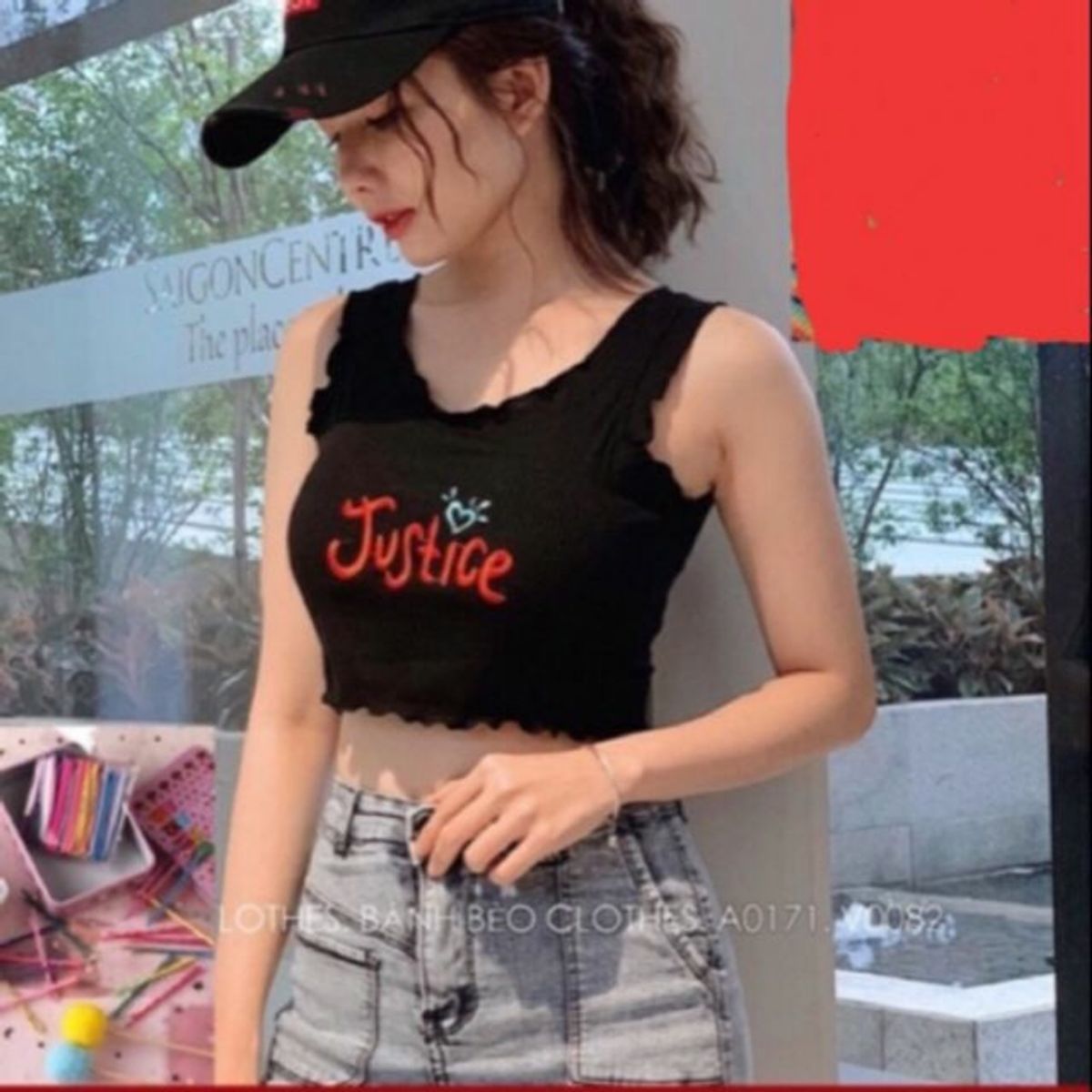 Áo croptop cuốn biên thêu chữ JuShce giá sỉ - giá bán buôn
