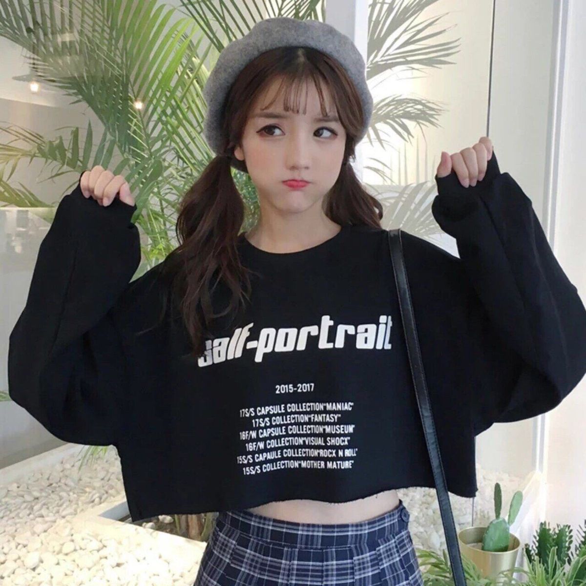 Áo croptop thun tay dài màu đen giá sỉ/bán buôn