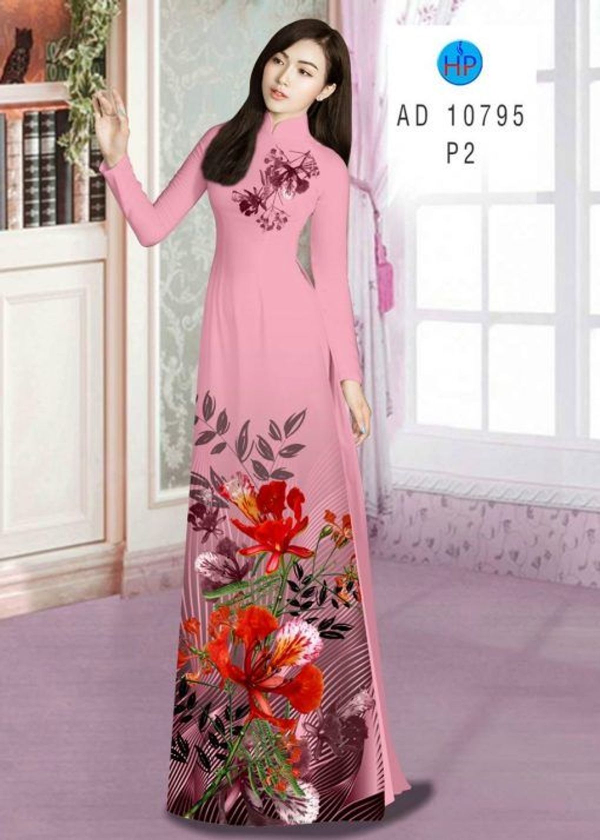 Áo dài 3d họa tiết hoa phượng 10795 giá sỉ - giá bán buôn