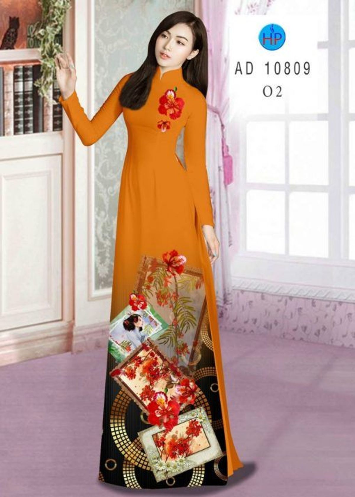 ÁO DÀI 3D HỌA TIẾT HOA PHƯỢNG 10809 giá sỉ - giá bán buôn