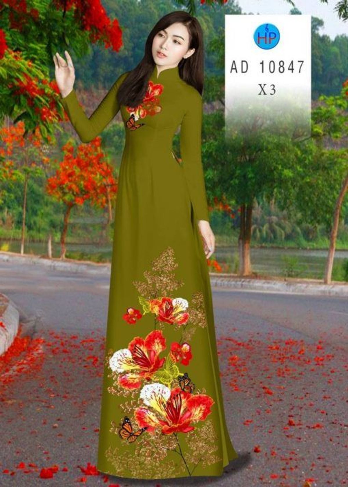 ÁO DÀI 3D HỌA TIẾT HOA PHƯỢNG 10847