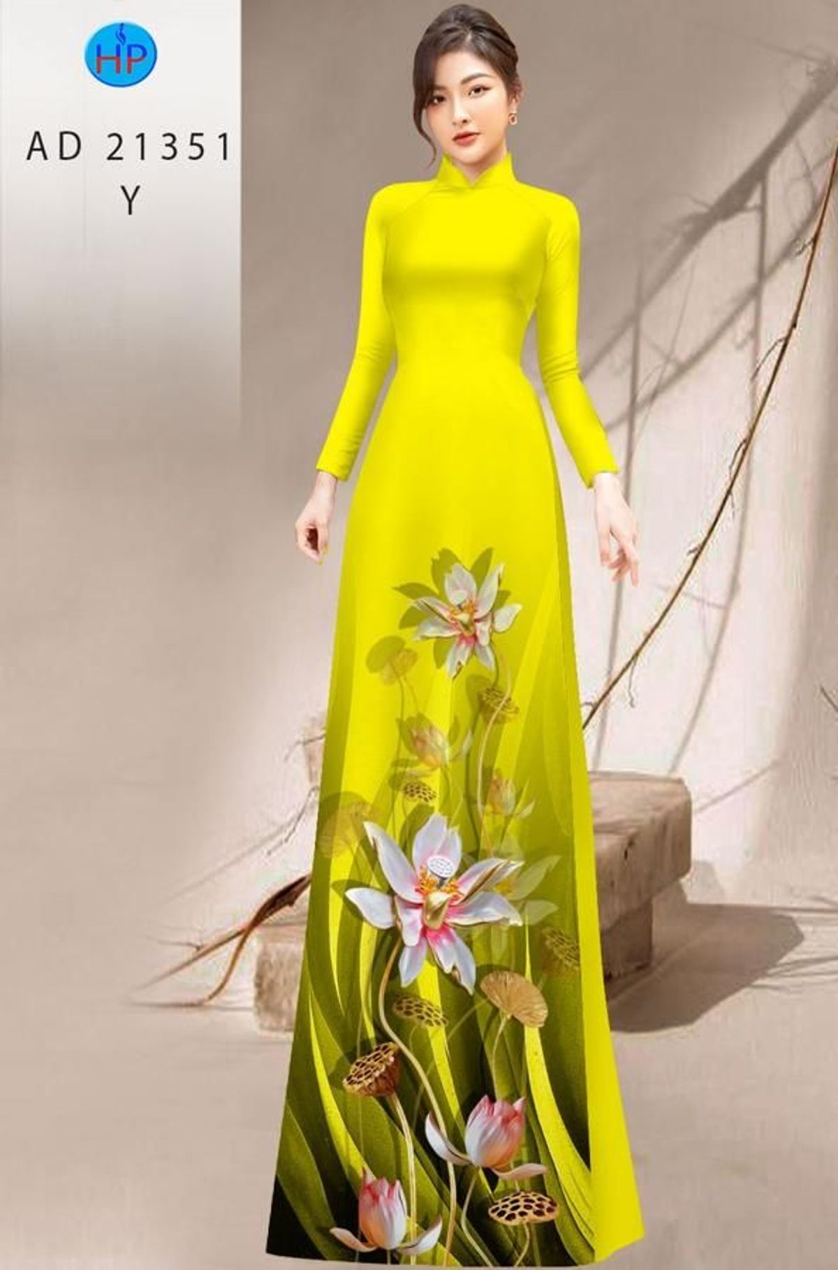 Áo dài 3d họa tiết hoa sen 21351 giá sỉ - giá bán buôn