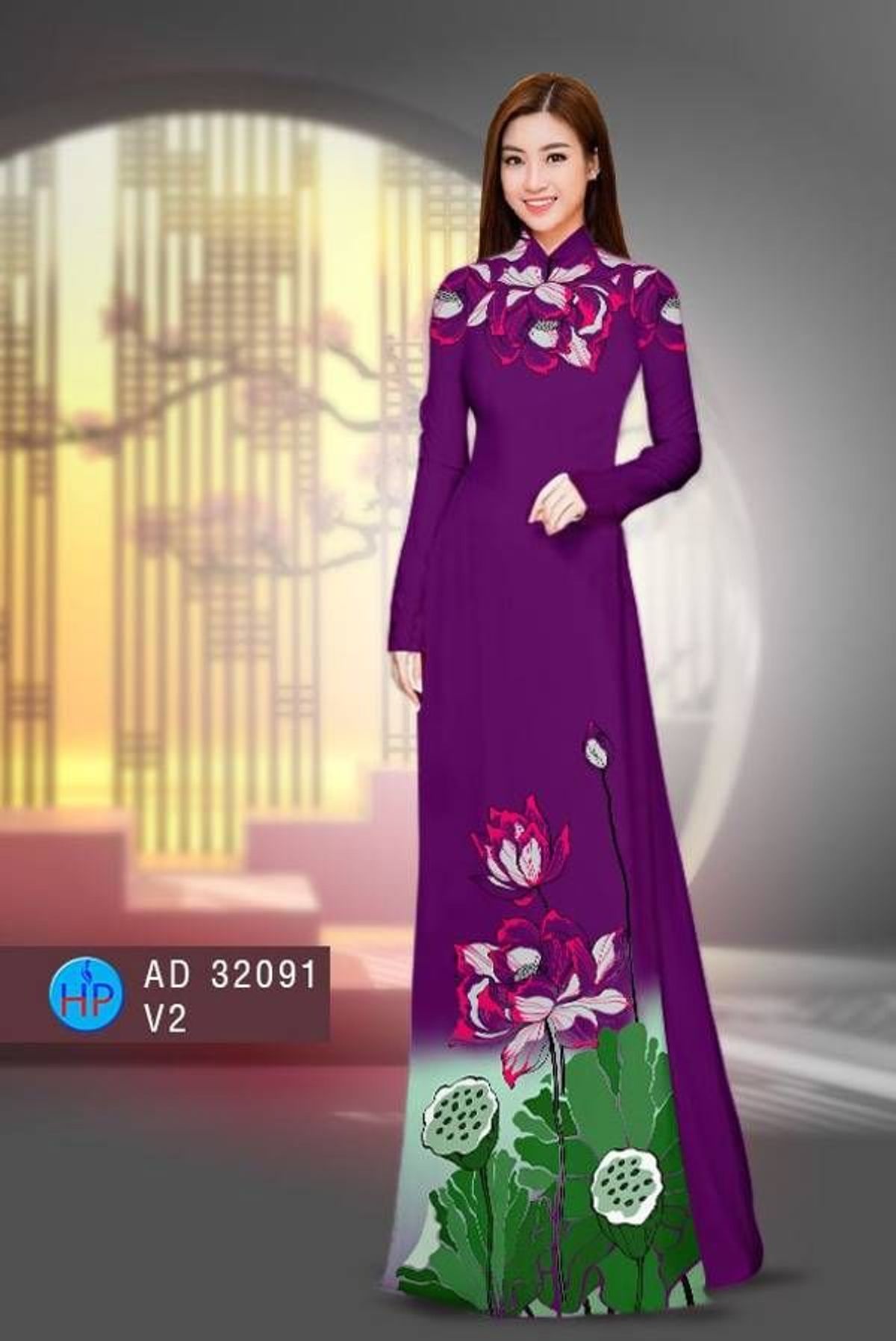 Áo dài 3d họa tiết hoa sen 32091 giá sỉ - giá bán buôn