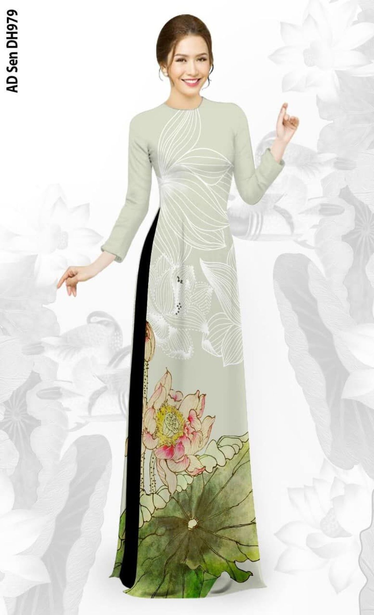 ÁO DÀI 3D HỌA TIẾT SEN DH979 giá sỉ - giá bán buôn