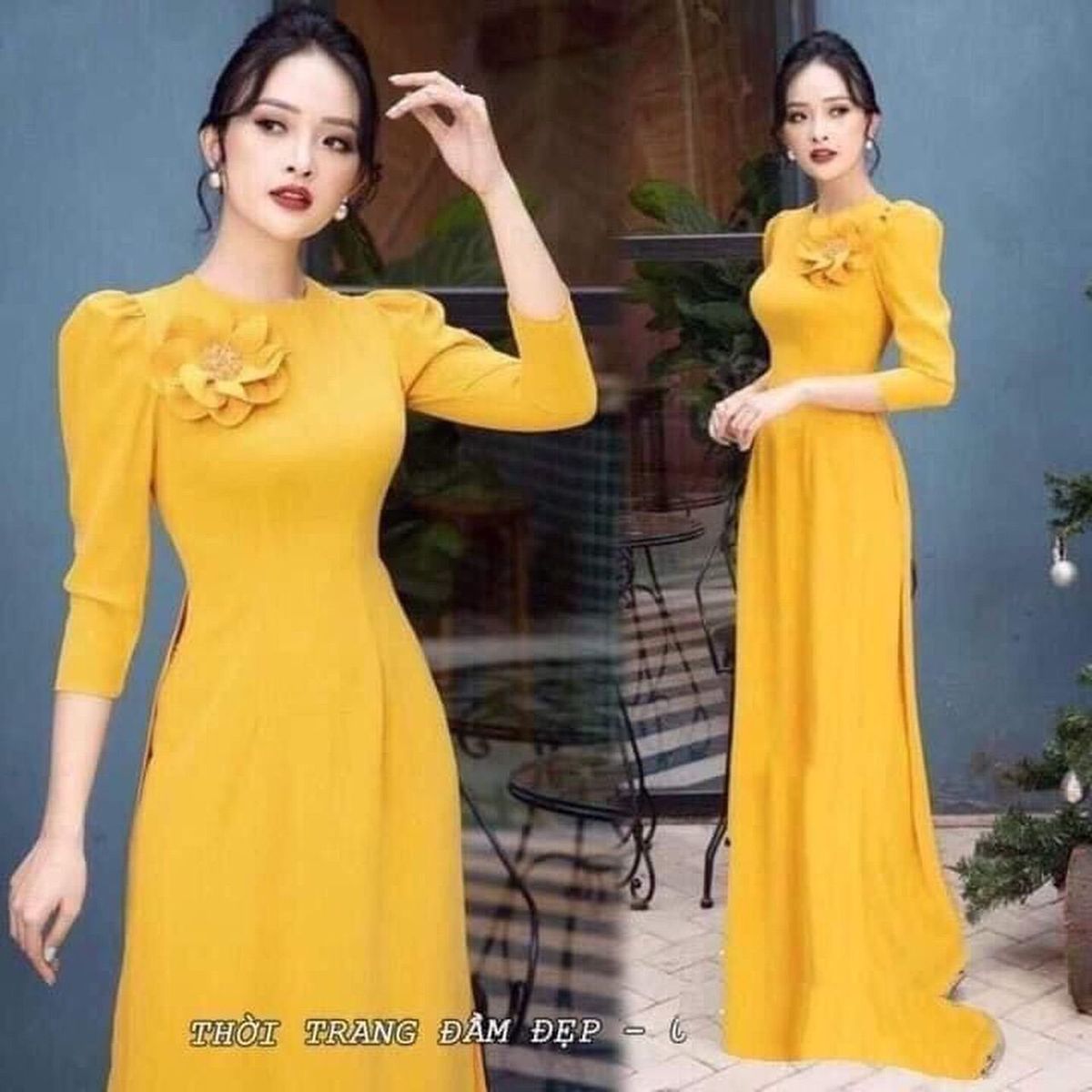 Áo dài bông hoa vàng giá sỉ - giá bán buôn