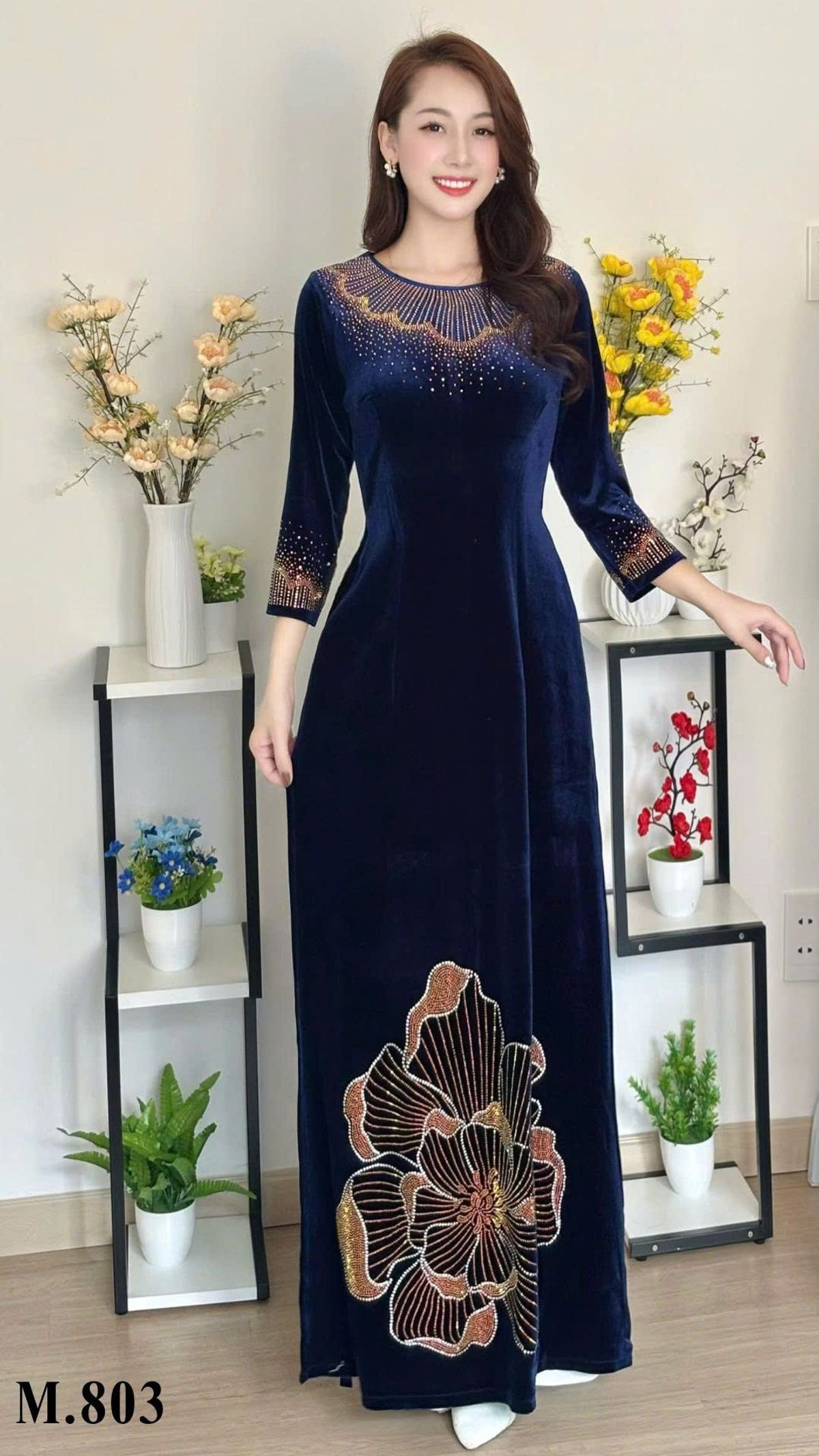 MÃ: M803 – ÁO DÀI NHUNG ÉP ĐÁ DMC CAO CẤP
