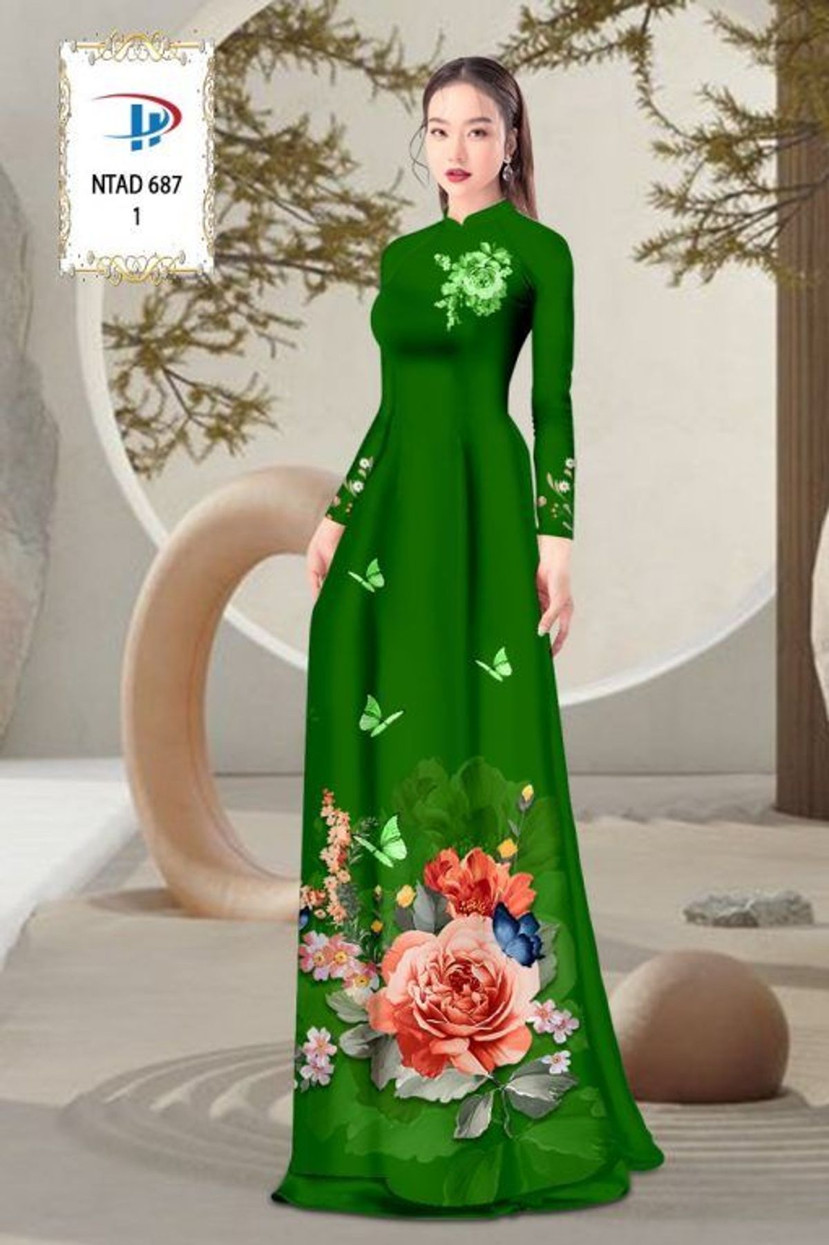 Áo dài họa tiết hoa hồng 687 giá sỉ - giá bán buôn
