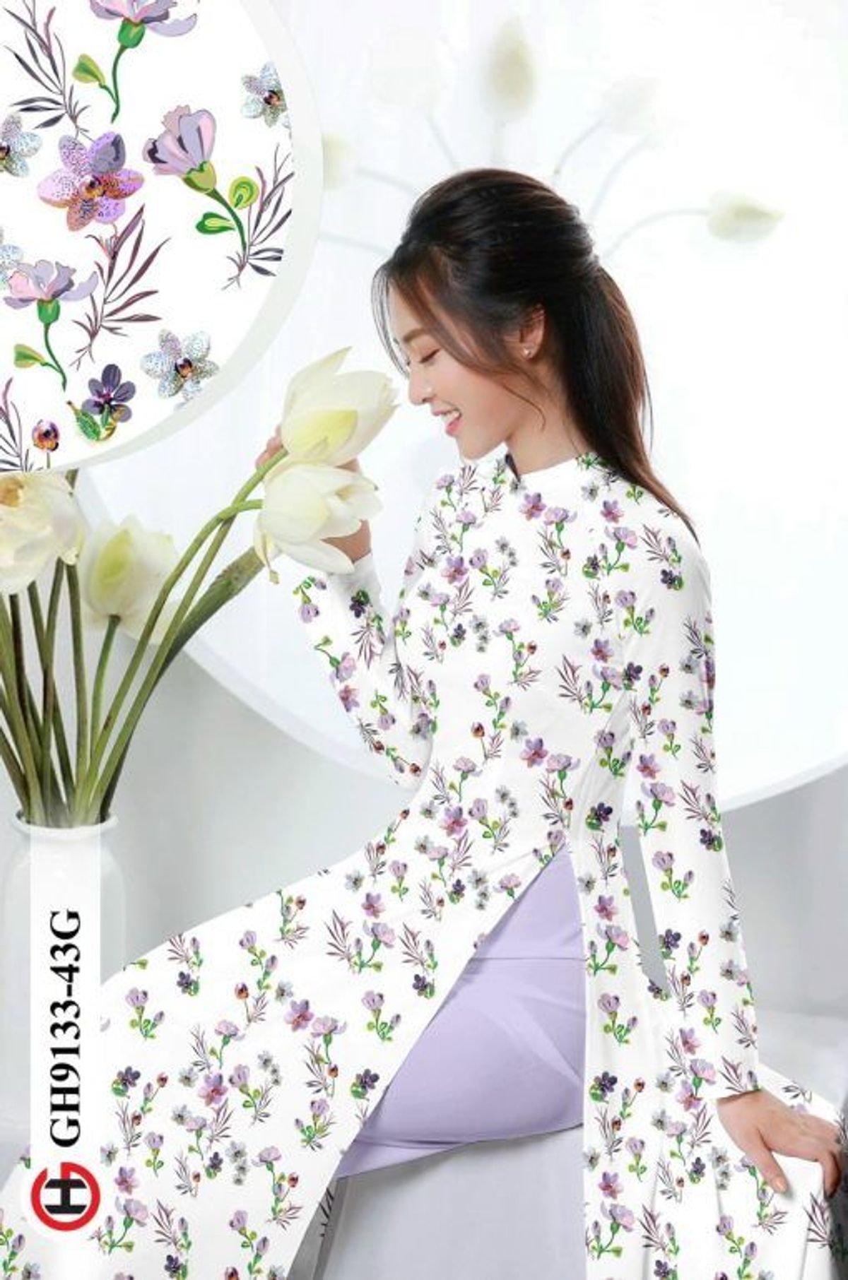 ÁO DÀI HỌA TIẾT HOA NHÍ 9133 giá sỉ - giá bán buôn
