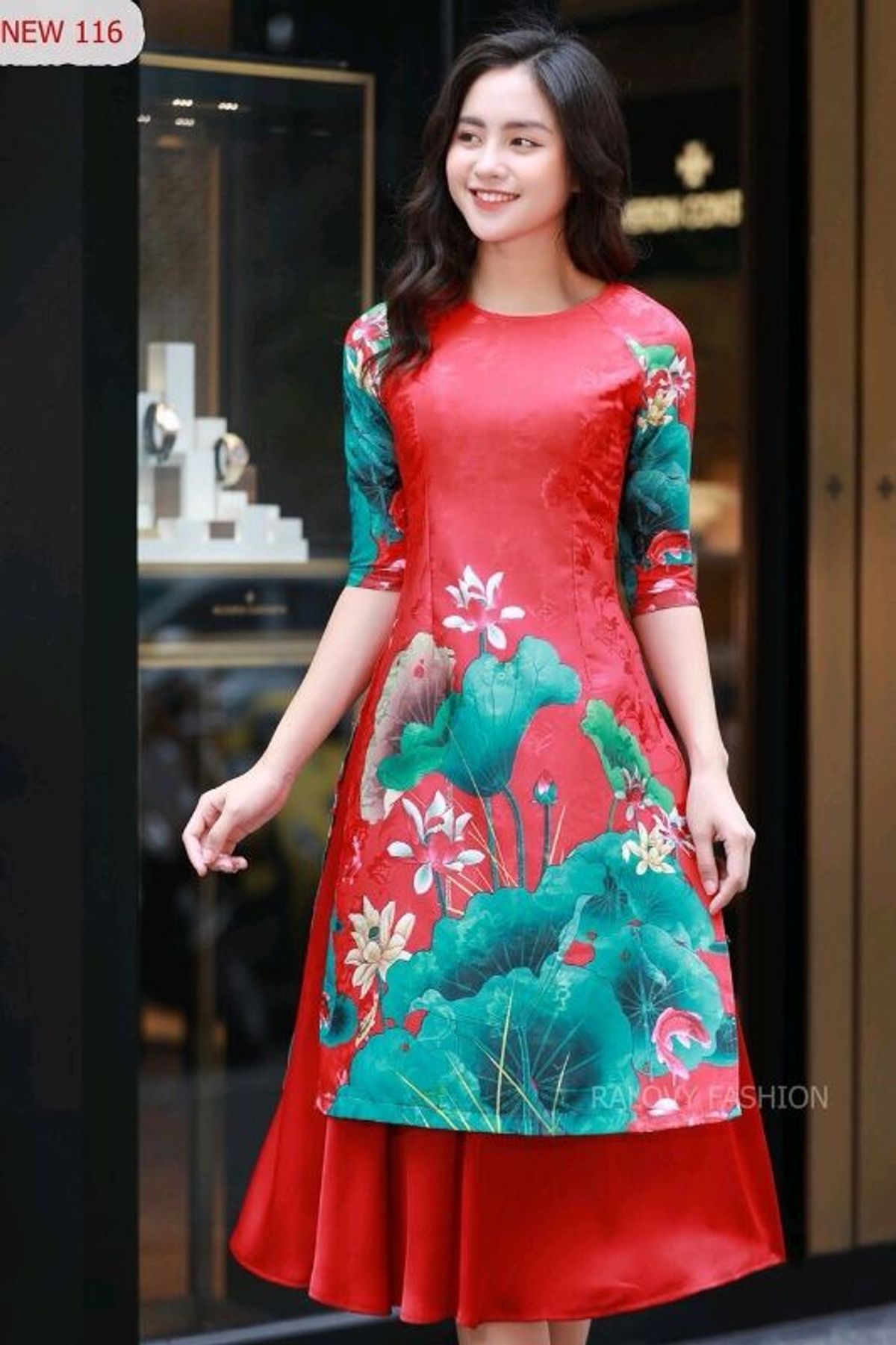áo dài in hoa sen giá sỉ - giá bán buôn