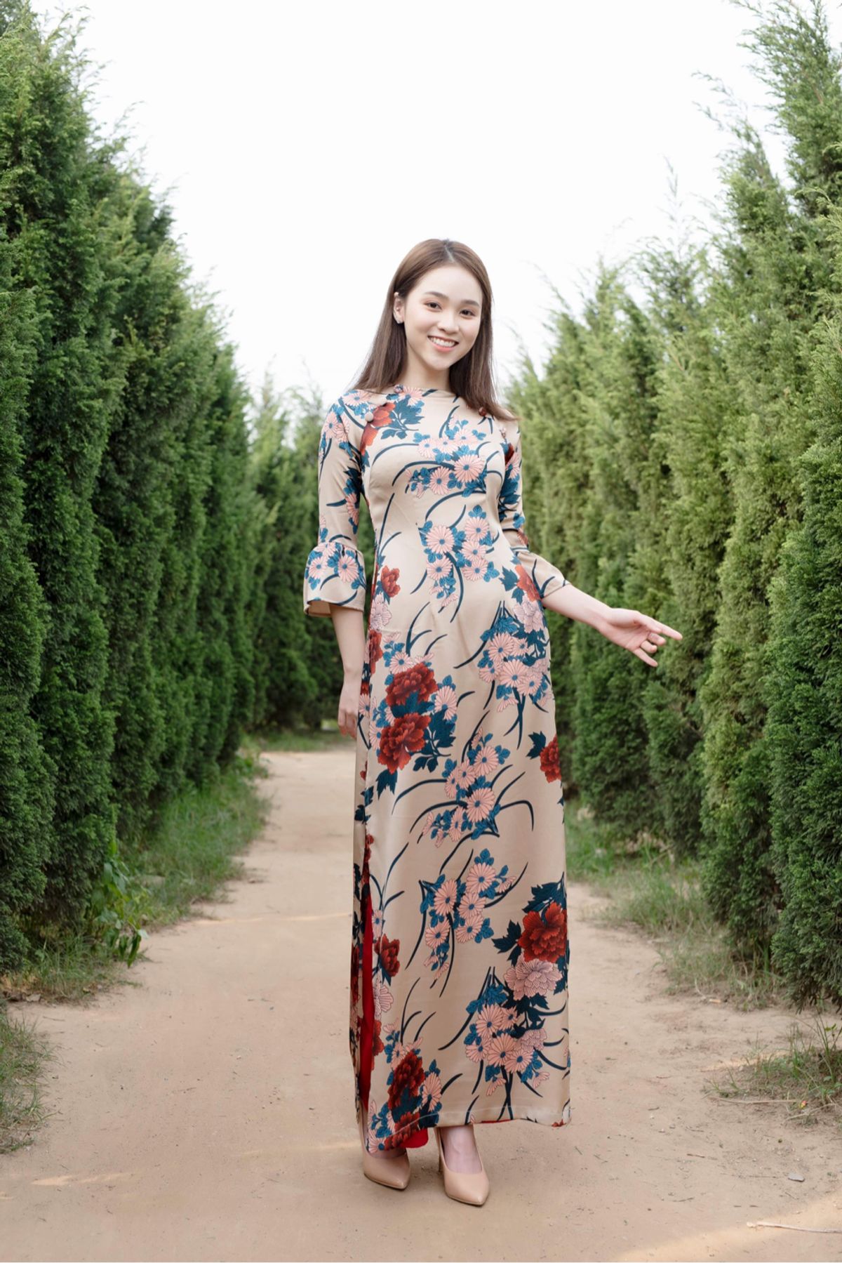 ÁO DÀI LỤA HOA THIẾT KẾ ĐỘC LẠ