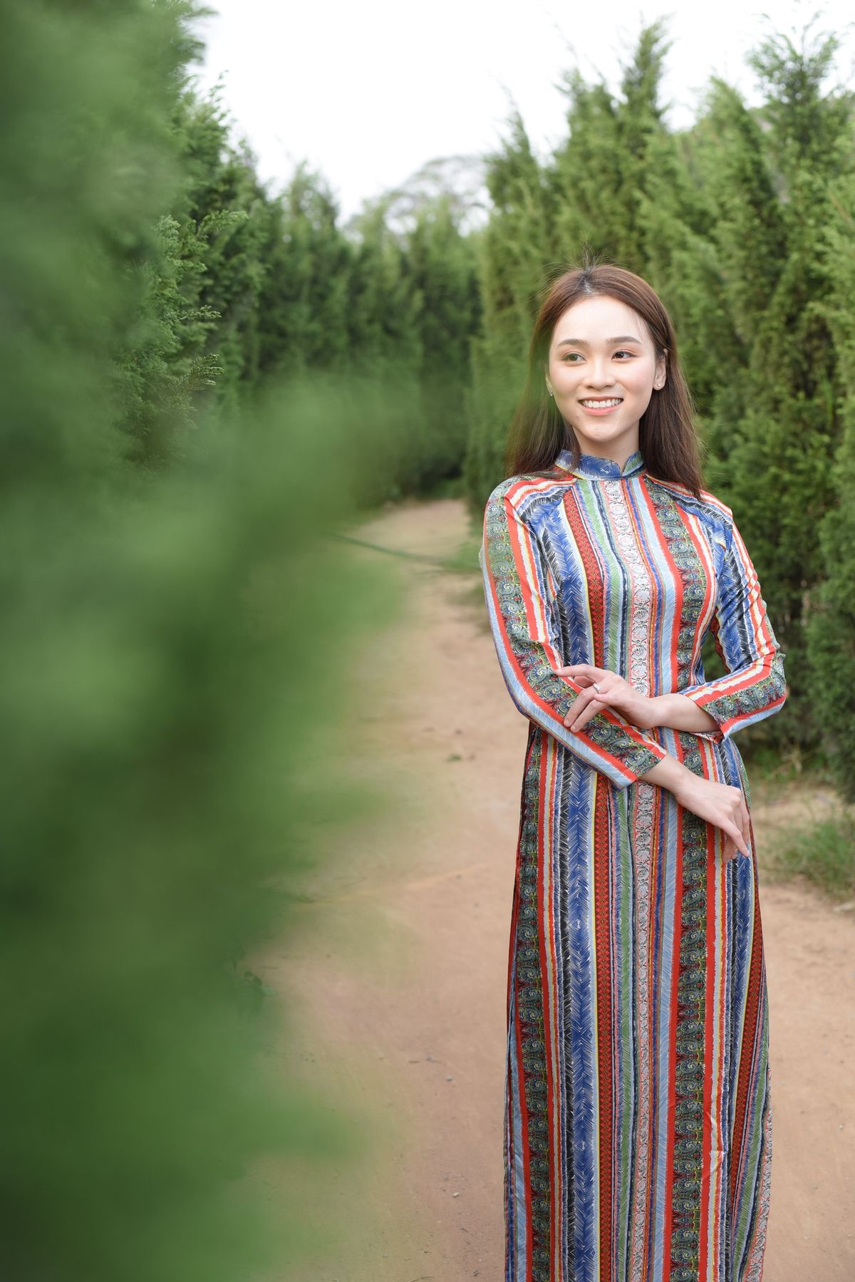 ÁO DÀI LỤA SỌC CÁ TÍNH ĐỘC ĐÁO