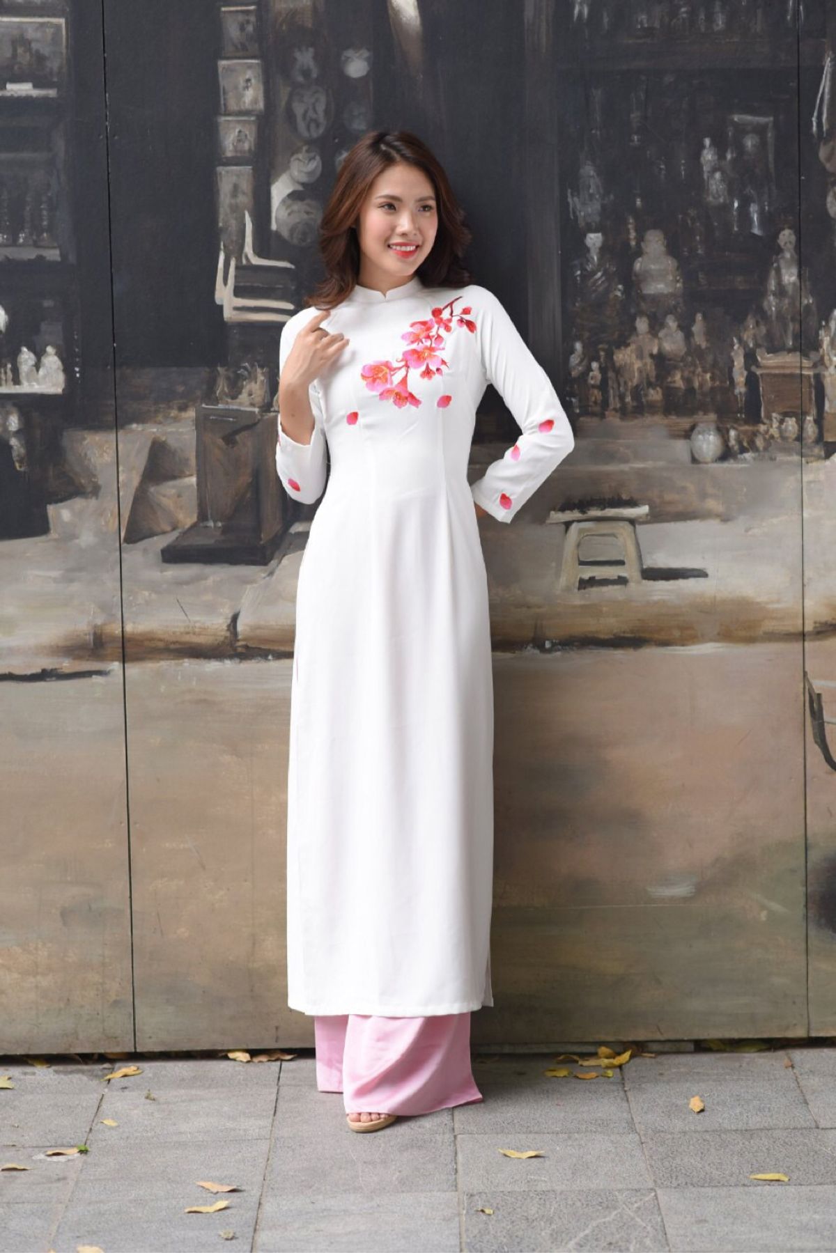 Áo dài đc làm từ chất liệu lụa cao cấp, suôn mịn và mềm, cầm rất sướng tay nhé. Hoạ tiết thêu hoa Anh đào nhẹ nhàng, phảng phất hương xuân. Cánh hoa được thêu trải từ ngực áo đến cổ tay tạo sự liên kết và TINH TẾ cho sản phẩm.