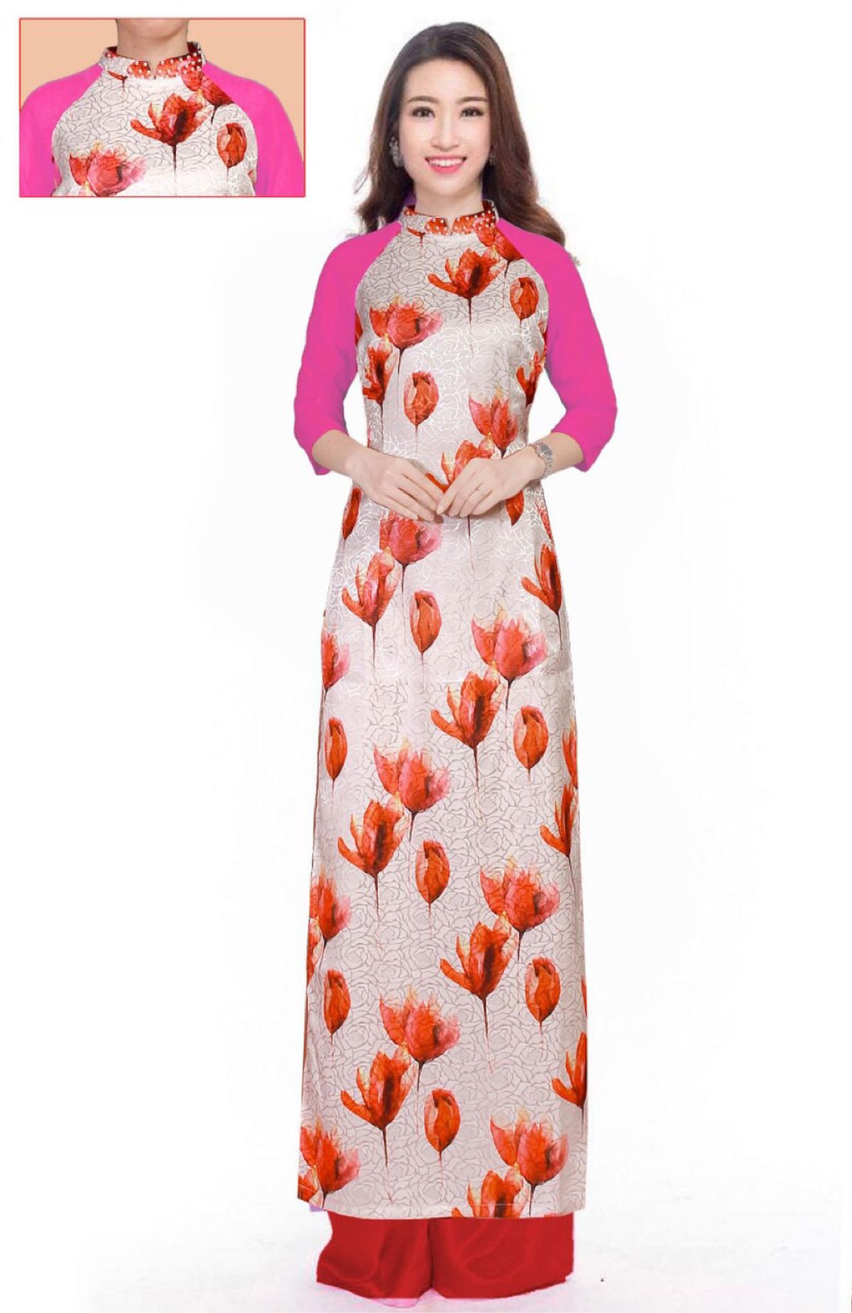 Sét ÁO DÀI TRUYỀN THỐNG GẤM HỌA TIẾT HOA NHƯ HÌNH , CHẤT BAO XỊN SÒ ,ÁO VÀ QUẦN