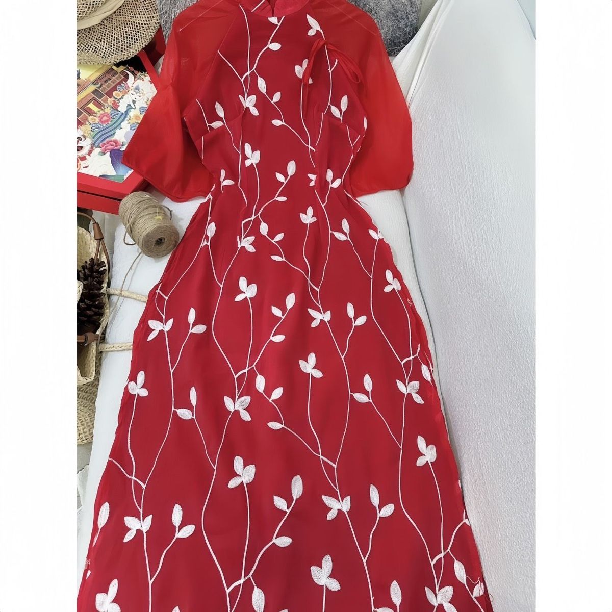 Áo dài thêu - 4 tà ;-x Dịu dáng đúng điệu nàng thơ /-rose /-rose /-rose Chất tơ xốp thêu /-strong A502_175k/ set