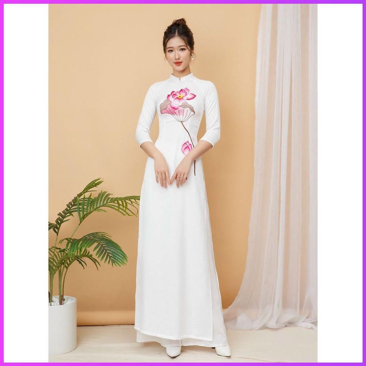 Áo dài thêu họa tiết sen giá sỉ - giá bán buôn