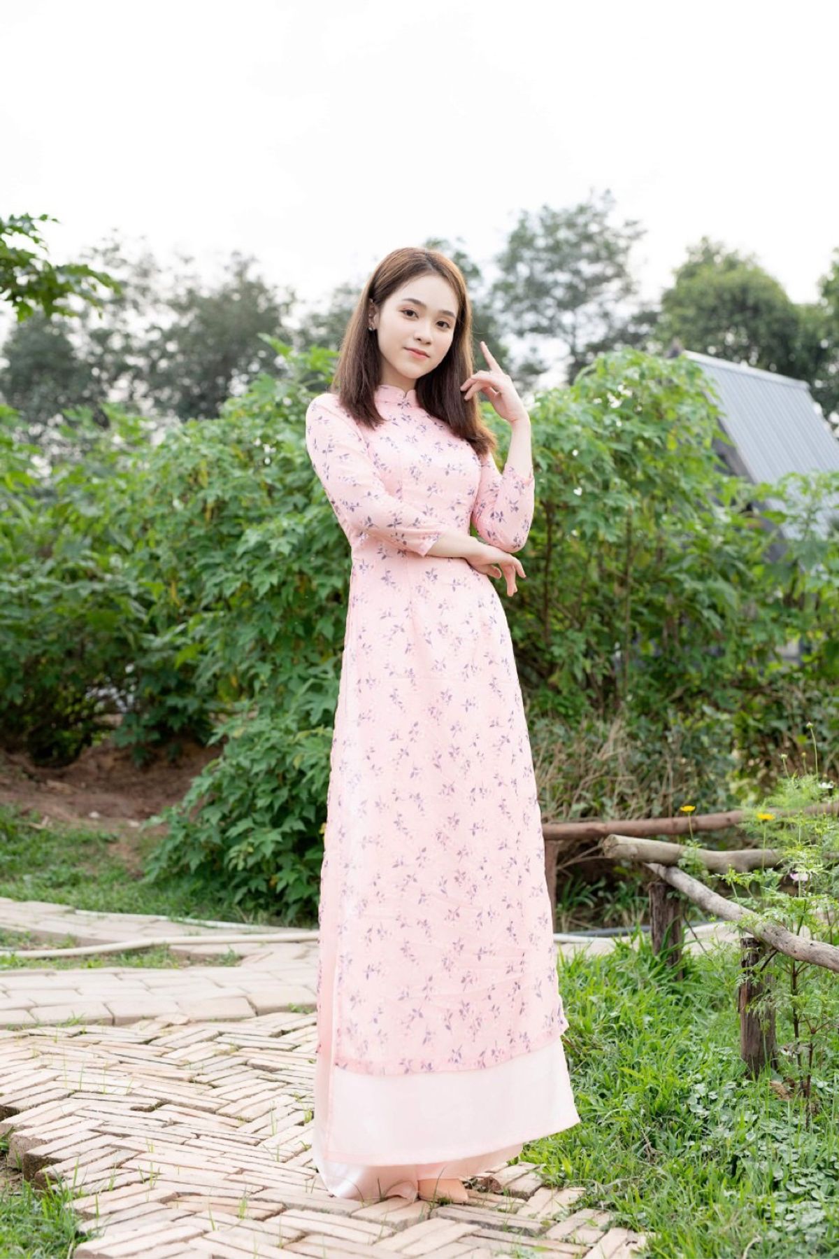 Vải tơ hoa mềm mại bay tà kết hợp với lót lụa mịn mang lại vẻ đẹp dịu dàng bay bay cho các nàng thơ.
