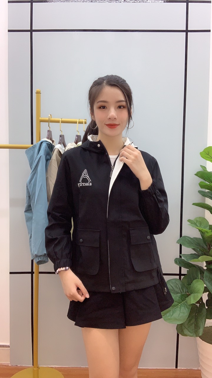 -Thiếu kế khoá kéo chống nước + dây kéo ở mũ + dây rút ở gấu áo tiện lợi