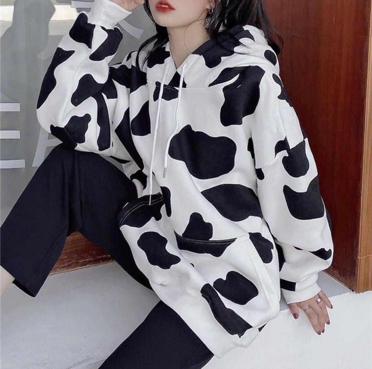 Áo hoodie bò sữa unisex nam nữ freesize dưới 65kg