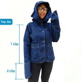 Áo khoác chống nắng Jean loại cao cấp có mũ che, túi trong và tay áo dài qua ngón
