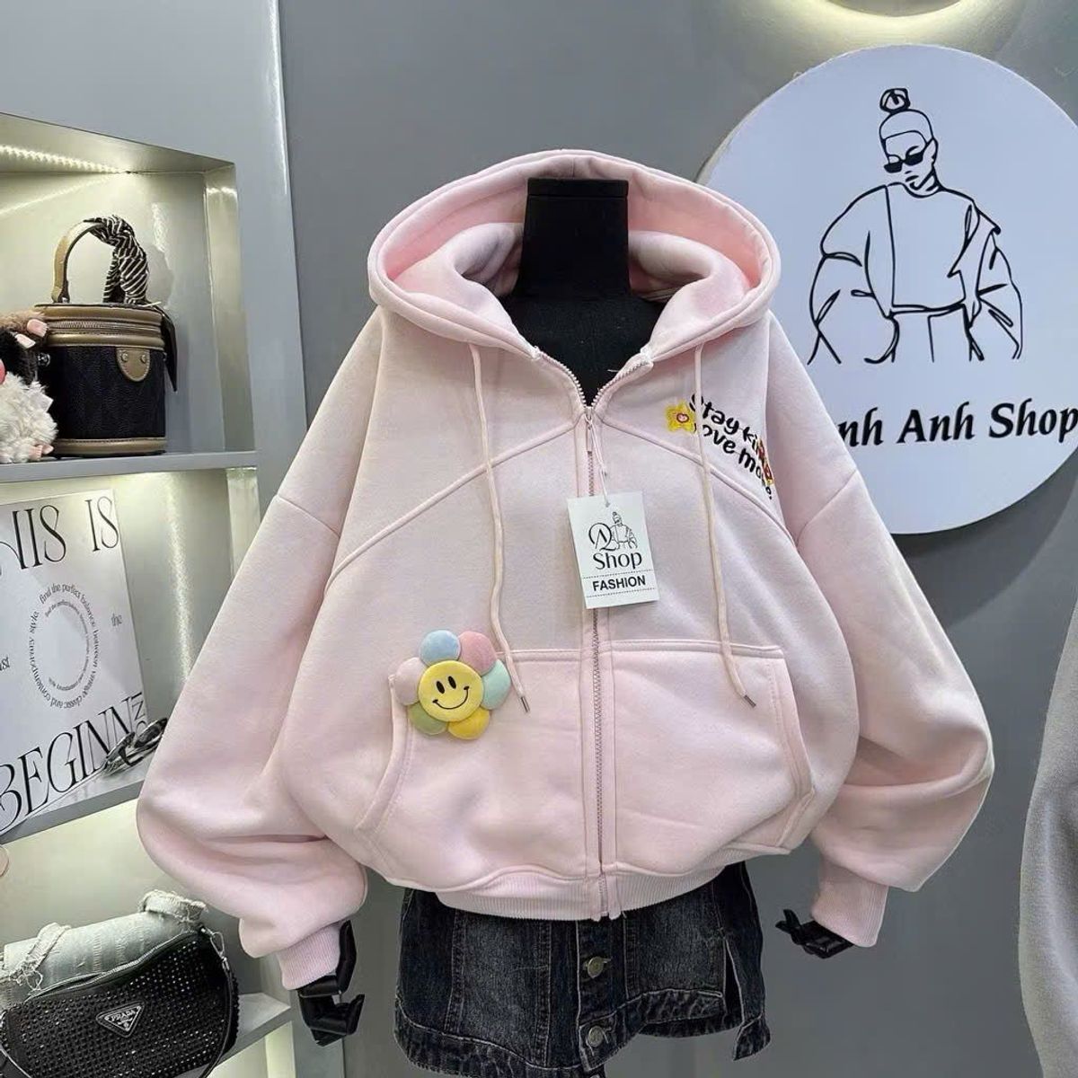Áo khoác nỉ nữ mũ rộng kèm charm mặt cười độc đáo