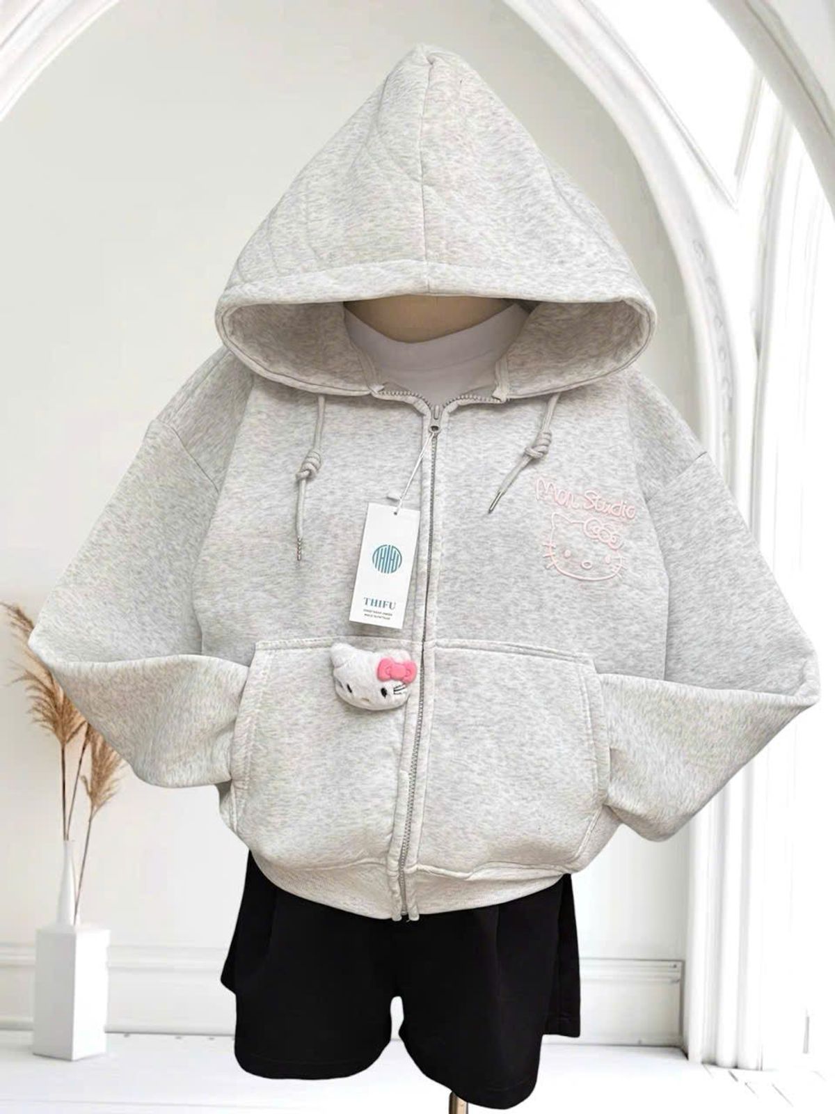 Áo khoác nữ Mon Studio logo in nổi có kèm charm mèo mới về