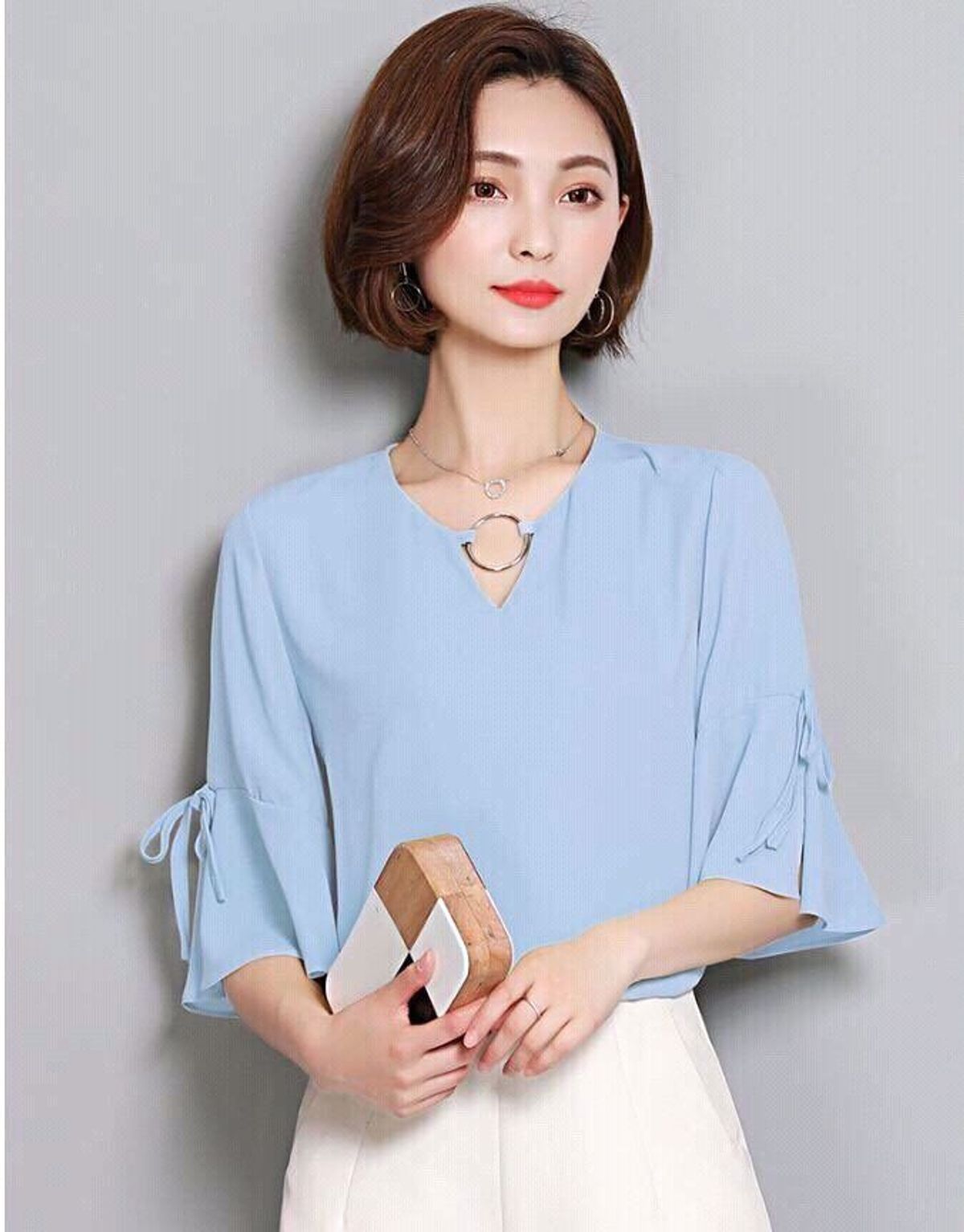 Kiểu dáng: Áo kiểu cổ cách điệu, tay ngắn