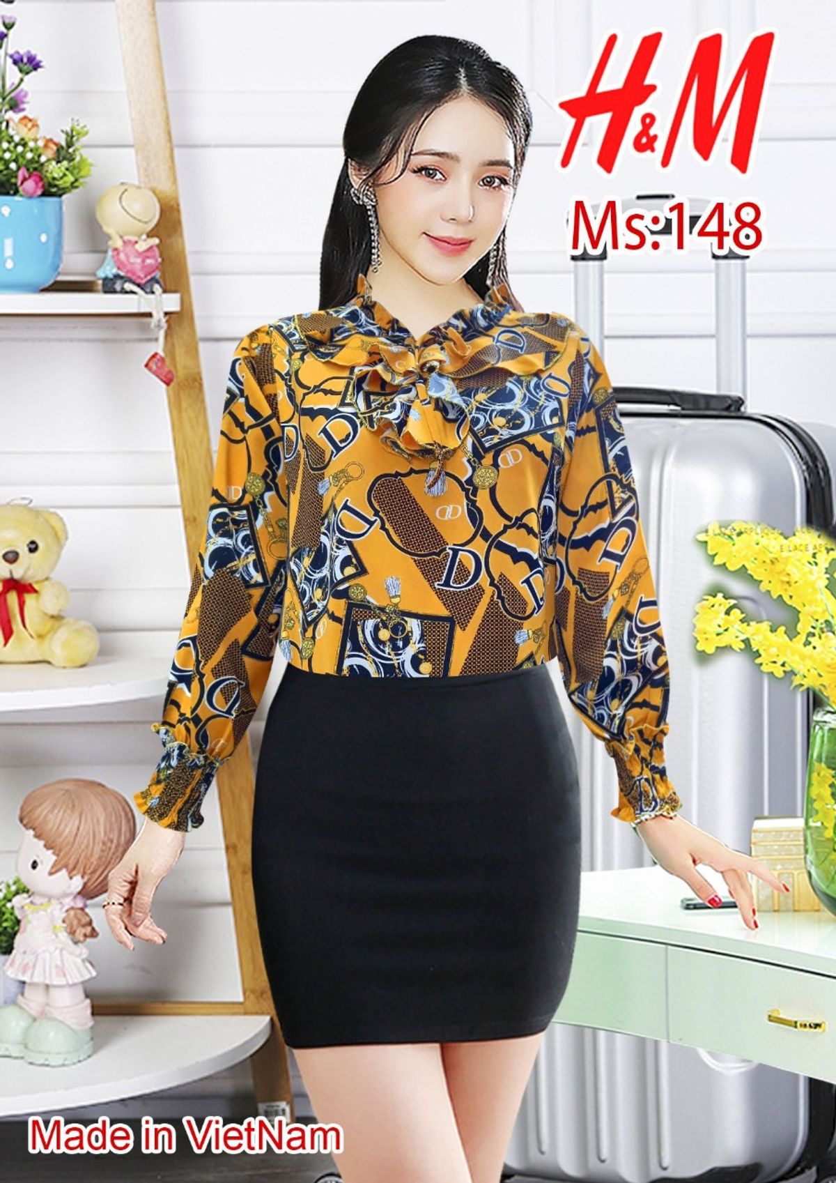 Áo kiểu nữ trung niên sơ mi họa tiết vải Man.go(Mã 148) giá sỉ/bán buôn