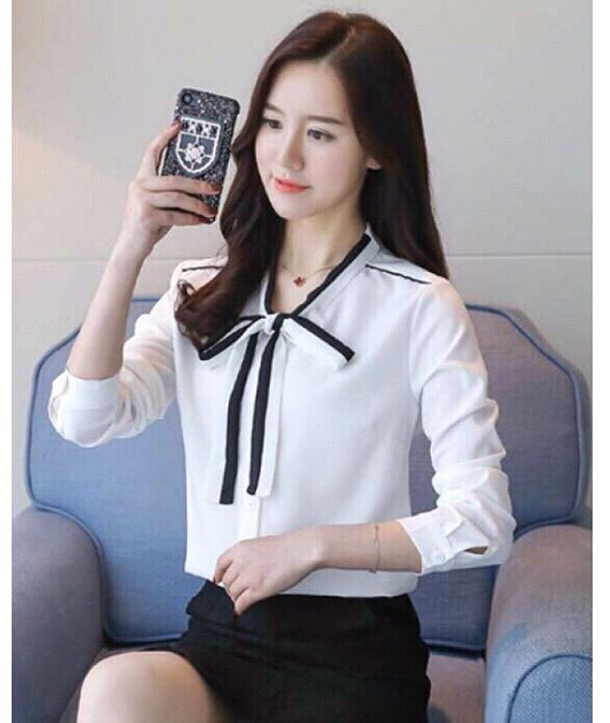 Dang áo kiểu thắt nơ cổ ,tay lỡ