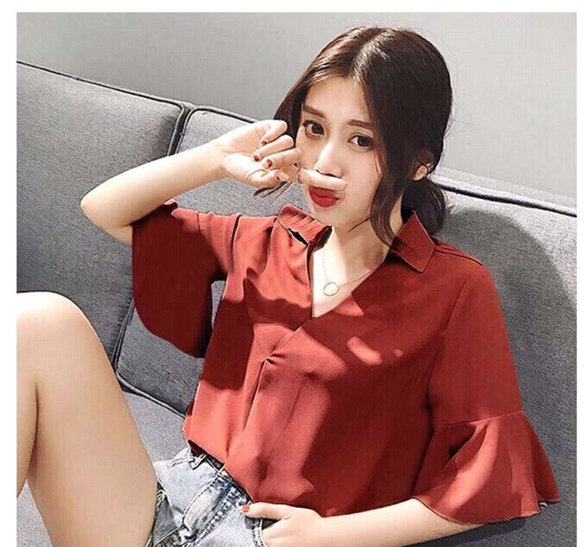 Kiểu dáng: Áo kiểu cổ cách điệu, tay lỏ